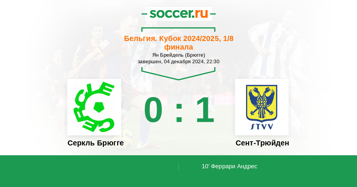 Бельгия. Про-Лига 11.12.2021 Сент-Трюйден Логотип футбольный клуб Сент-Трюйден (Синт-Трёйден) 1:2 Логотип футбольный клуб Серкль Брюгге Серкль Брюгге