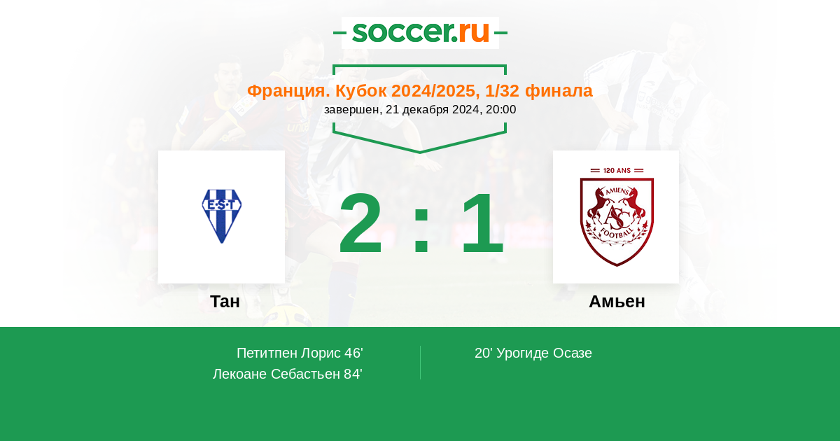 Амьен 1:0 0:0 1:0
