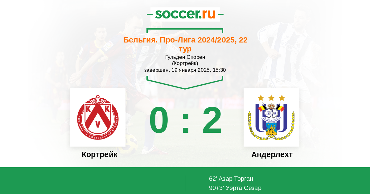 Бельгия. Про-Лига 10.03.2019 Андерлехт Логотип футбольный клуб Андерлехт (Брюссель) 2:0 Логотип футбольный клуб Кортрейк Кортрейк