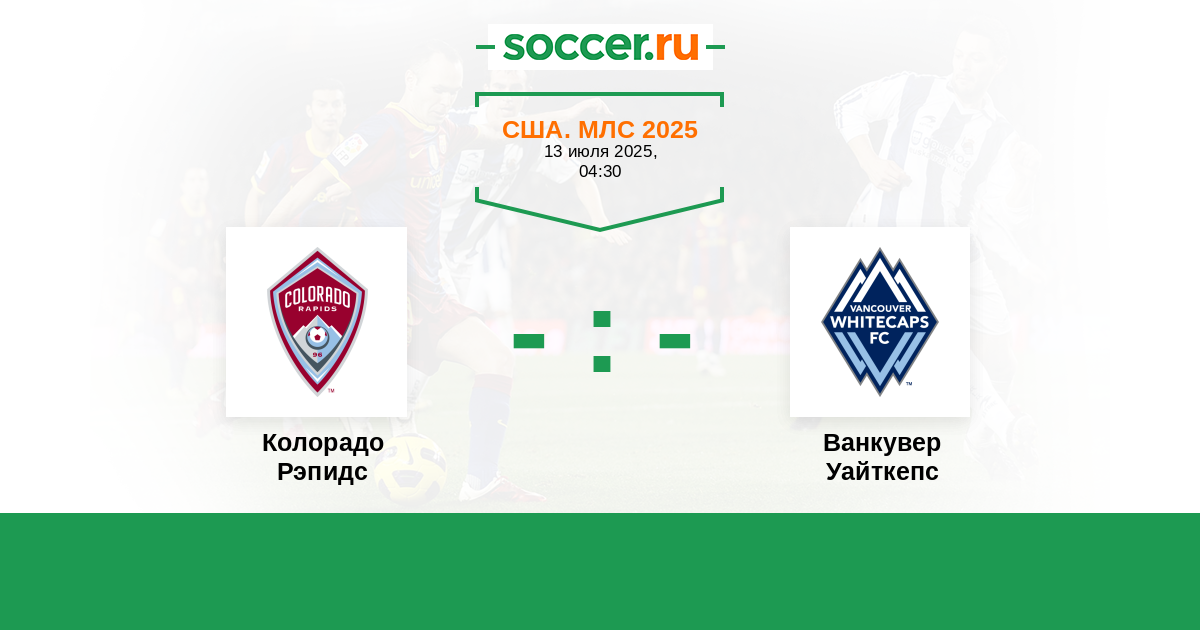 США. МЛС 06.04.2025 Ванкувер Уайткепс Логотип футбольный клуб Ванкувер Уайткепс 2:0 Логотип футбольный клуб Колорадо Рэпидс (Денвер) Колорадо Рэпидс