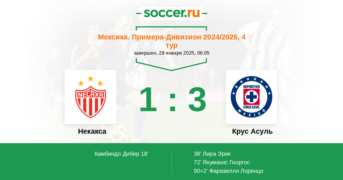Мексика. Примера-Дивизион 22.01.2023 Некакса Логотип футбольный клуб Некакса (Агуаскальентес) 1:0 Логотип футбольный клуб Крус Асуль (Мехико) Крус Асуль