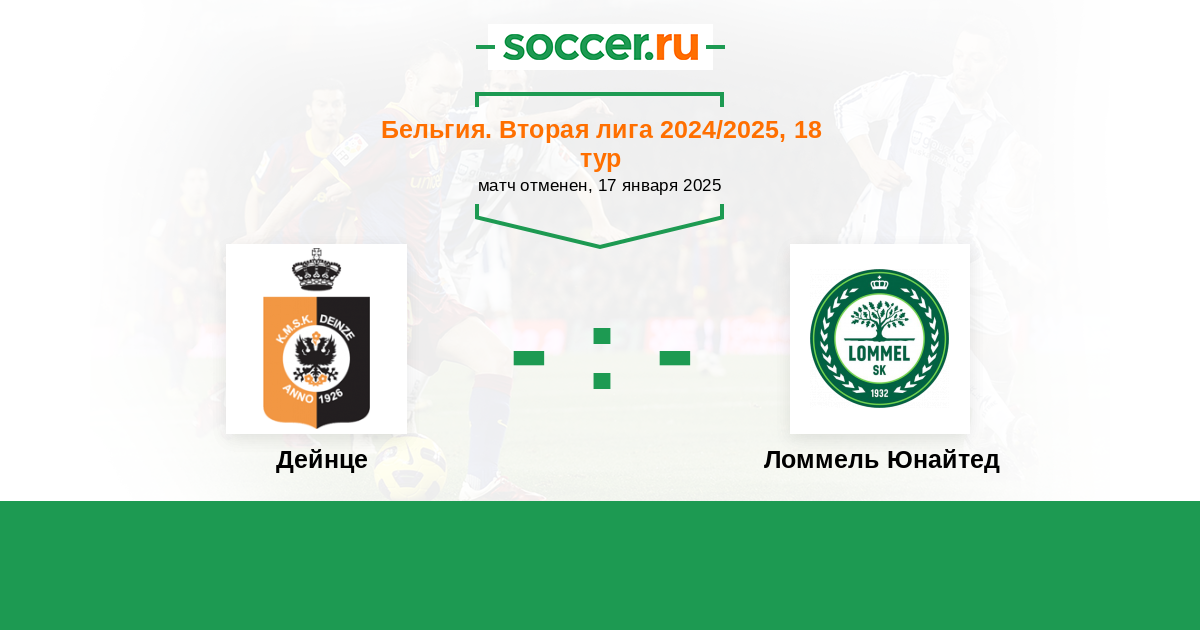 Бельгия. Национальный дивизион 1 24.02.2018 Дейнце Логотип футбольный клуб Дейнце 0:1 Логотип футбольный клуб Ломмель Юнайтед Ломмель Юнайтед