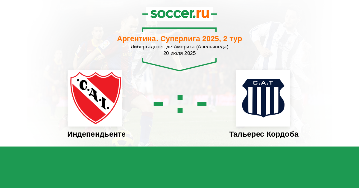 Аргентина. Суперлига 11.06.2022 Индепендьенте Логотип футбольный клуб Индепендьенте (Авельянеда) 1:0 Логотип футбольный клуб Тальерес Кордоба Тальерес Кордоба