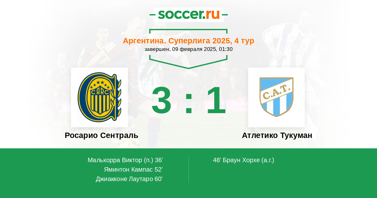 Аргентина. Суперлига 27.08.2024 Росарио Сентраль Логотип футбольный клуб Росарио Сентраль 1:0 Логотип футбольный клуб Атлетико Тукуман (Сан-Мигель-де-Тукуман) Атлетико Тукуман