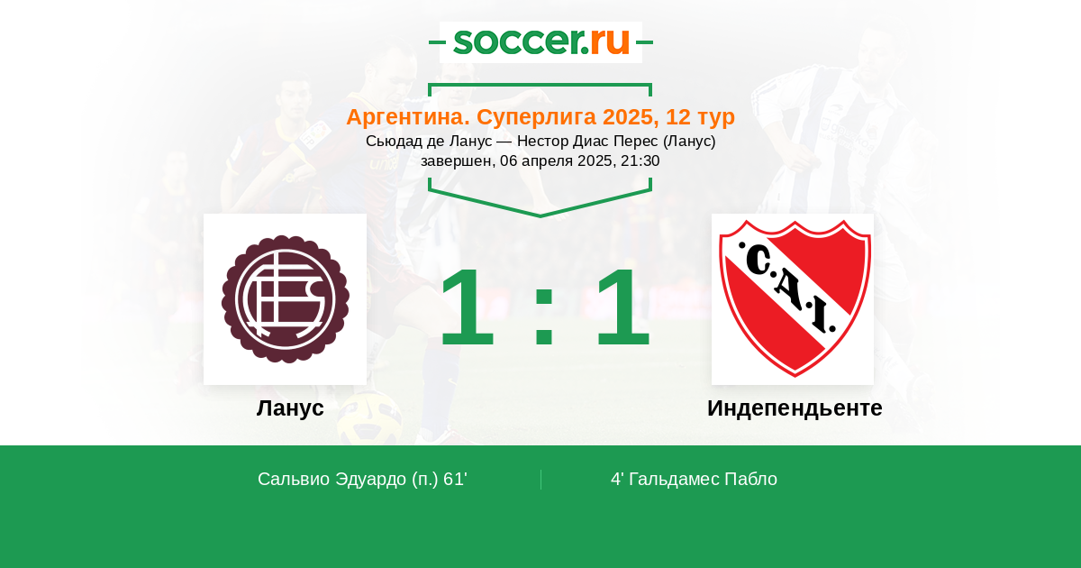 Аргентина. Суперлига 07.06.2011 Индепендьенте Логотип футбольный клуб Индепендьенте (Авельянеда) 1:2 Логотип футбольный клуб Ланус Ланус