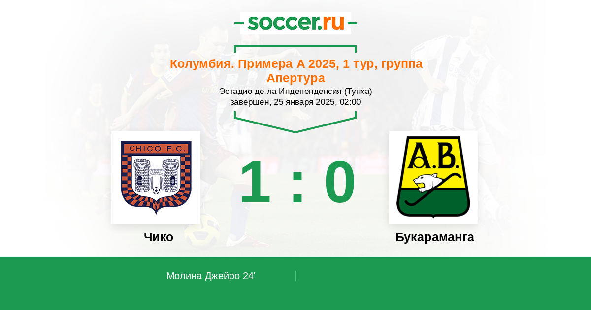 Колумбия. Примера А 20.01.2021 Букараманга Логотип футбольный клуб Букараманга 2:0 Логотип футбольный клуб Чико (Тунха) Чико