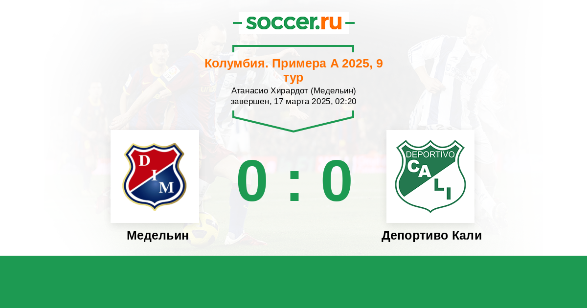 Колумбия. Примера А 31.01.2022 Медельин Логотип футбольный клуб Медельин 2:0 Логотип футбольный клуб Депортиво Кали Депортиво Кали