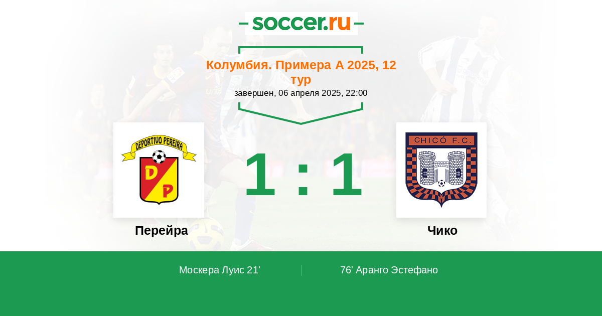 Колумбия. Примера А 06.04.2011 Перейра Логотип футбольный клуб Перейра 0:1 Логотип футбольный клуб Чико (Тунха) Чико
