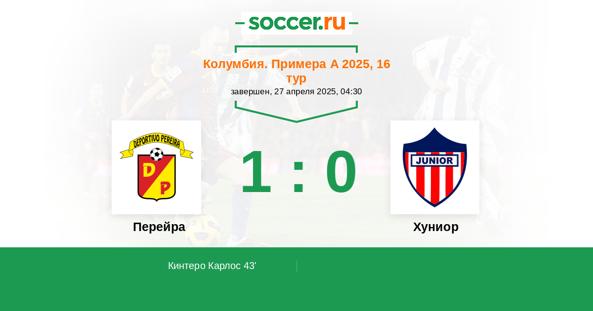 Колумбия. Примера А 21.03.2022 Перейра Логотип футбольный клуб Перейра 1:0 Логотип футбольный клуб Хуниор (Барранкилья) Хуниор