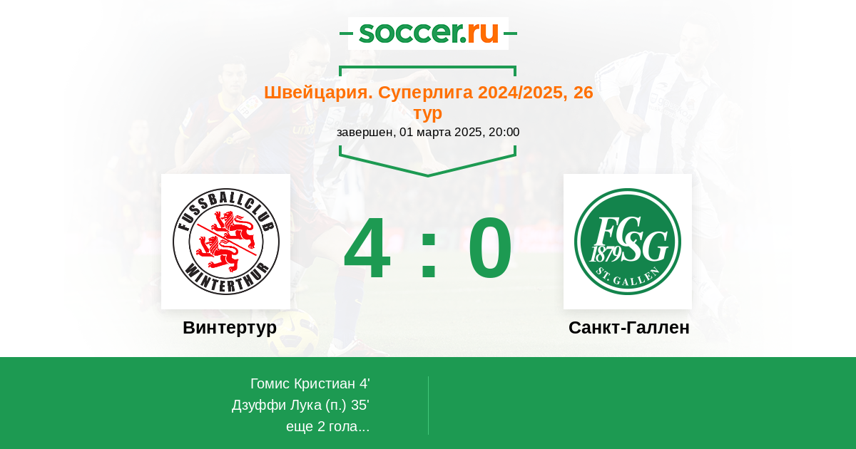 Швейцария. Суперлига 10.05.2025 Санкт-Галлен Логотип футбольный клуб Санкт-Галлен 1:4 Логотип футбольный клуб Винтертур Винтертур