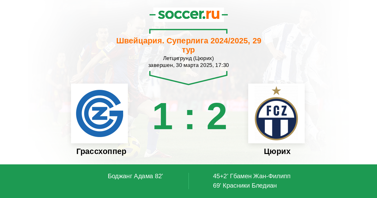 Швейцария. Суперлига 02.04.2022 Цюрих Логотип футбольный клуб Цюрих 1:1 Логотип футбольный клуб Грассхоппер (Цюрих) Грассхоппер