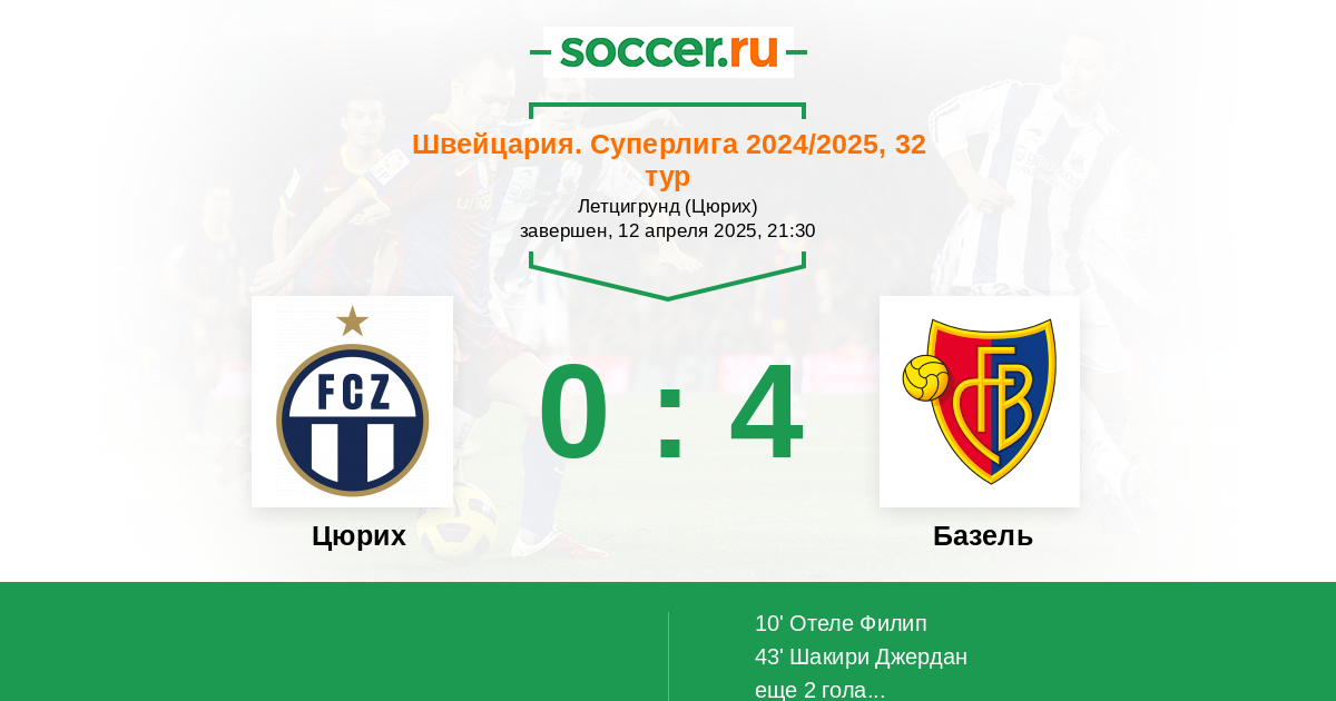 Швейцария. Суперлига 02.02.2025 Цюрих Логотип футбольный клуб Цюрих 0:1 Логотип футбольный клуб Базель Базель