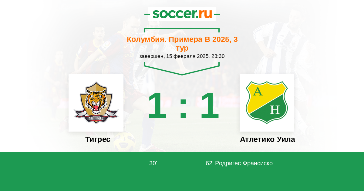 Колумбия. Примера А 1 0 1 0