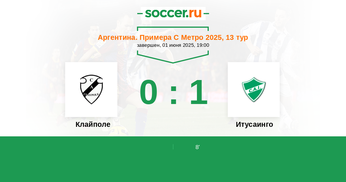 Аргентина. Примера С Метро 01.08.2021 Итусаинго Логотип футбольный клуб Итусаинго 2:0 Логотип футбольный клуб Клайполе Клайполе