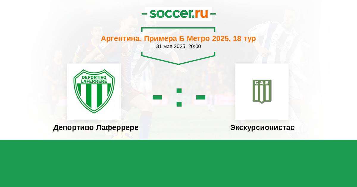 Аргентина. Примера С Метро 02.06.2019 Экскурсионистас Логотип футбольный клуб Экскурсионистас (Буэнос-Айрес) 1:1 Логотип футбольный клуб Депортиво Лаферрере Депортиво Лаферрере