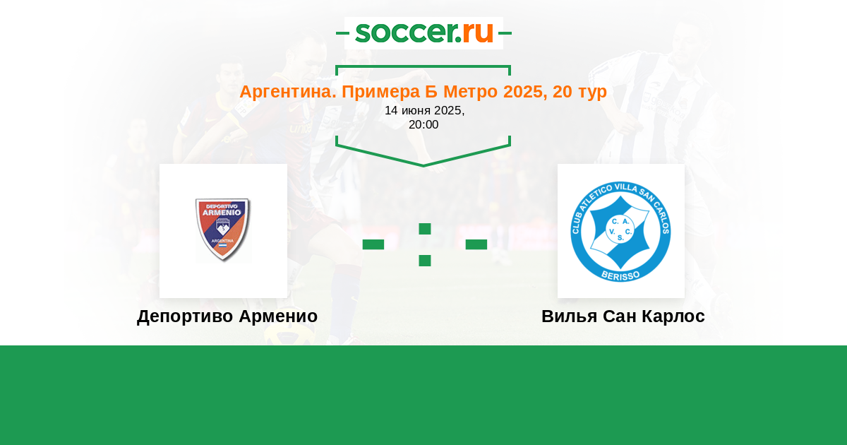 Аргентина. Примера Б Метро 06.10.2014 Вилья Сан Карлос Логотип футбольный клуб Вилья Сан Карлос (Берисо) 3:0 Логотип футбольный клуб Депортиво Арменио Депортиво Арменио