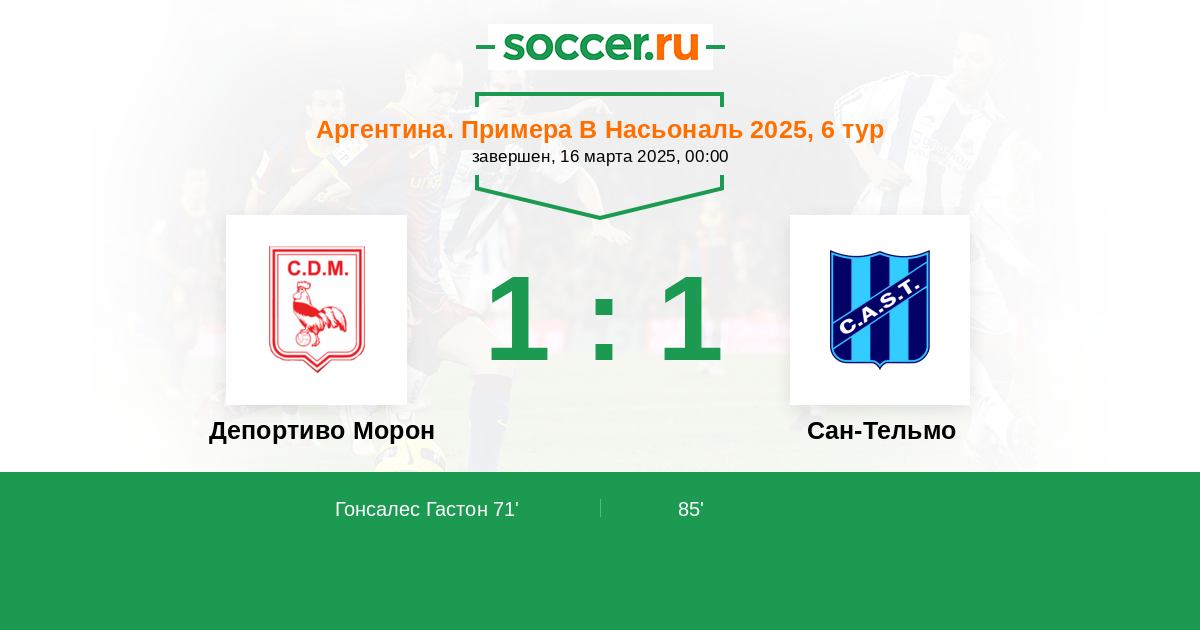 Аргентина. Примера Б Насьональ 21.07.2024 Сан-Тельмо Логотип футбольный клуб Сан-Тельмо 1:1 Логотип футбольный клуб Депортиво Морон Депортиво Морон