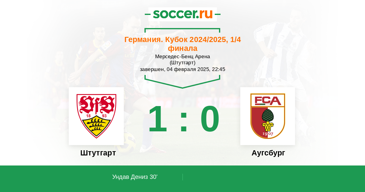 Германия. Бундеслига 12.01.2025 Аугсбург Логотип футбольный клуб Аугсбург 0:1 Логотип футбольный клуб Штутгарт Штутгарт