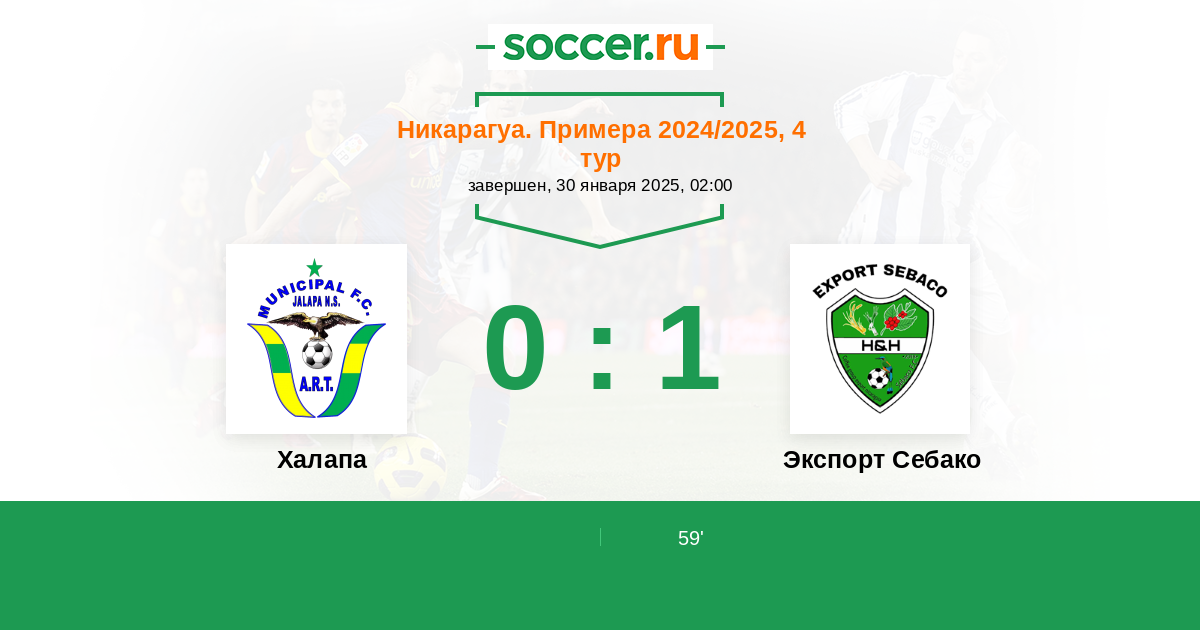 Никарагуа. Примера 21.01.2024 Халапа Логотип футбольный клуб Халапа (Окоталь) 1:2 Логотип футбольный клуб Экспорт Себако Экспорт Себако