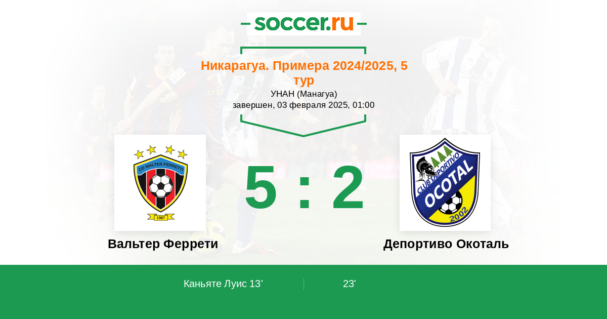 Никарагуа. Примера 26.02.2023 Депортиво Окоталь Логотип футбольный клуб Депортиво Окоталь 3:0 Логотип футбольный клуб Вальтер Феррети (Манагуа) Вальтер Феррети