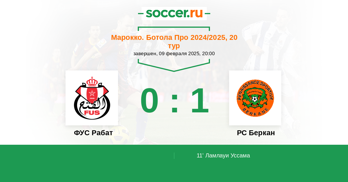 Марокко. Ботола 2 24.02.2007 РС Беркан Логотип футбольный клуб РС Беркан 1:1 Логотип футбольный клуб ФУС Рабат ФУС Рабат