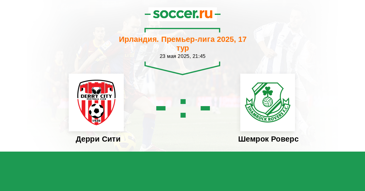 Ирландия. Премьер-лига 26.10.2025 Дерри Сити Логотип футбольный клуб Дерри Сити 2:1 Логотип футбольный клуб Шемрок Роверс (Дублин) Шемрок Роверс