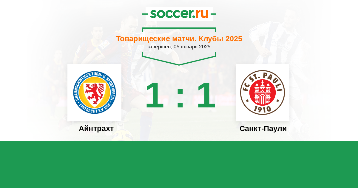 Товарищеские матчи. Клубы 14.11.2024 Айнтрахт Логотип футбольный клуб Айнтрахт (Брауншвейг) 1:1 Логотип футбольный клуб Санкт-Паули (Гамбург) Санкт-Паули
