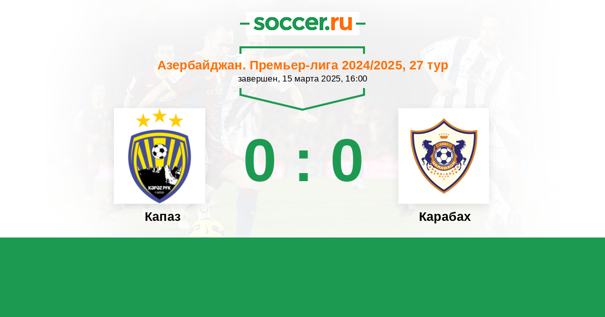 Азербайджан. Премьер-Лига 18.10.2024 Кяпаз Логотип футбольный клуб Кяпаз (Гянджа) 0:5 Логотип футбольный клуб Карабах (Агдам) Карабах