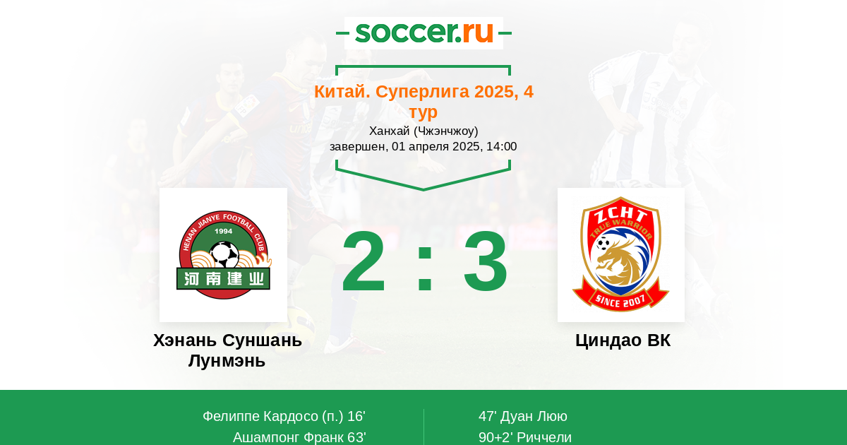 Хэнань Суншань Лунмэнь - Циндао ВК