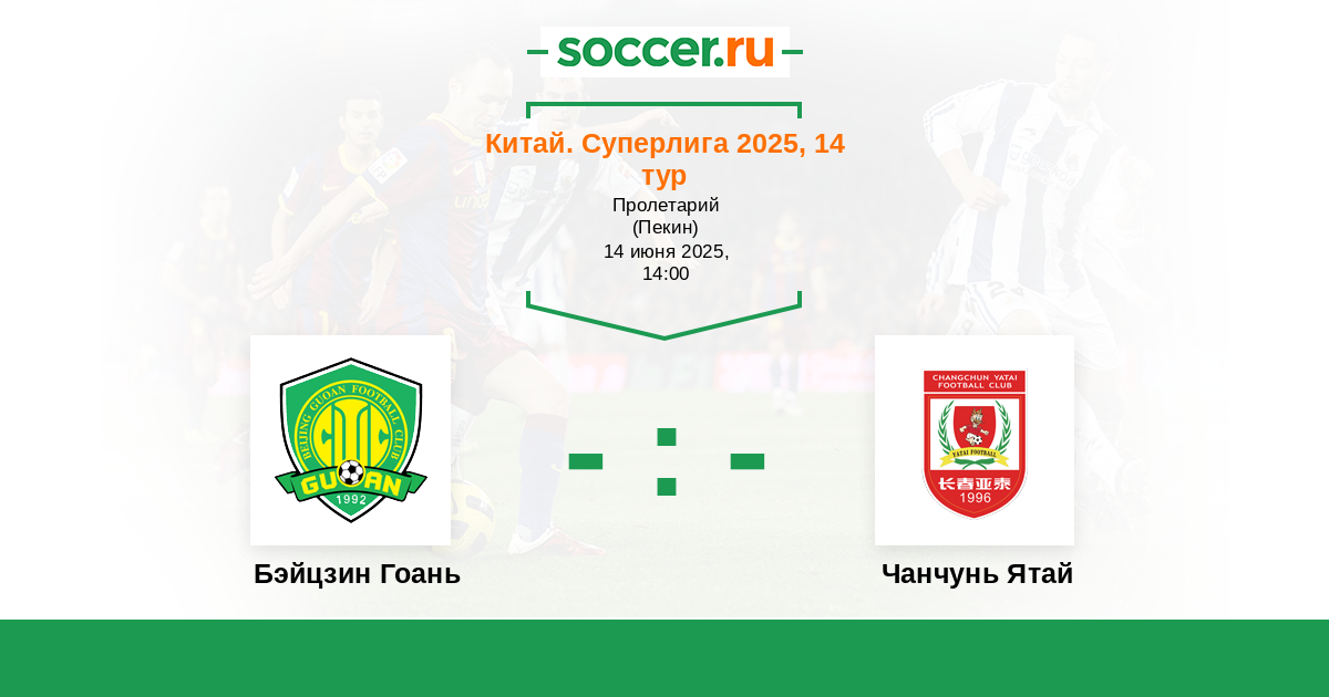 Китай. Суперлига 26.07.2014 Чанчунь Ятай Логотип футбольный клуб Чанчунь Ятай 2:2 Логотип футбольный клуб Бэйцзин Гоань (Пекин) Бэйцзин Гоань