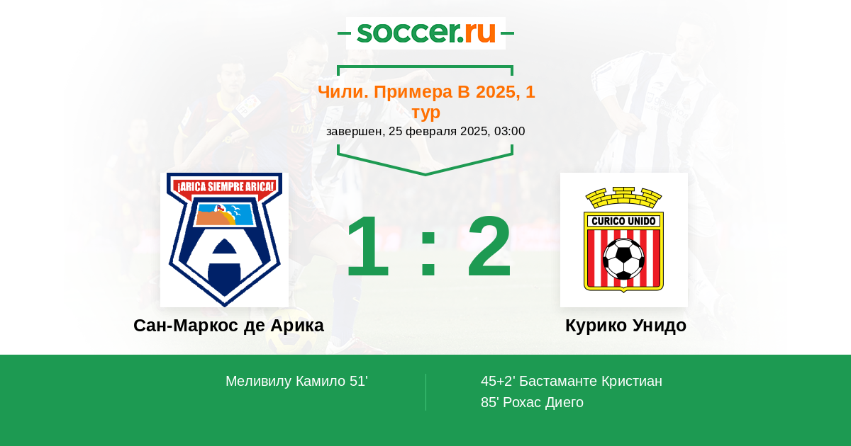Andres Melivilu Fuentes Camilo (2) Лучшие бомбардиры Барриос Николас (1)