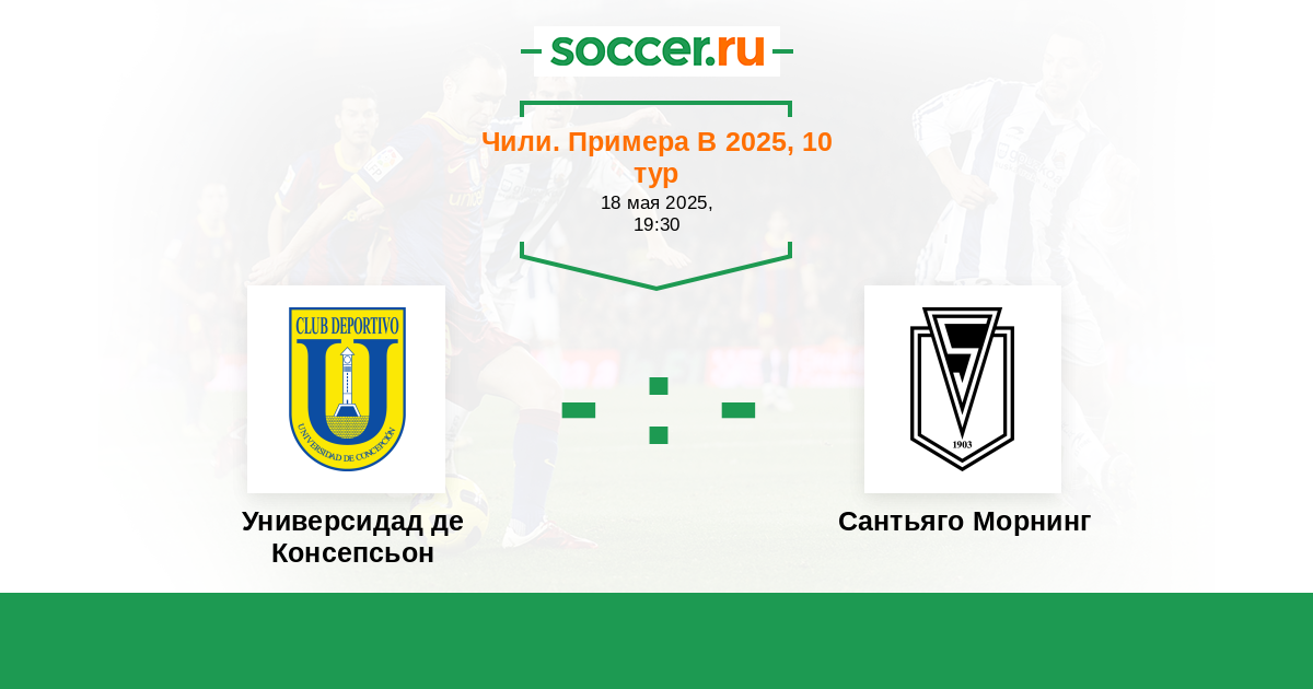 Чили. Примера В 01.10.2023 Сантьяго Морнинг Логотип футбольный клуб Сантьяго Морнинг 3:1 Логотип футбольный клуб Универсидад де Консепсьон Универсидад де Консепсьон