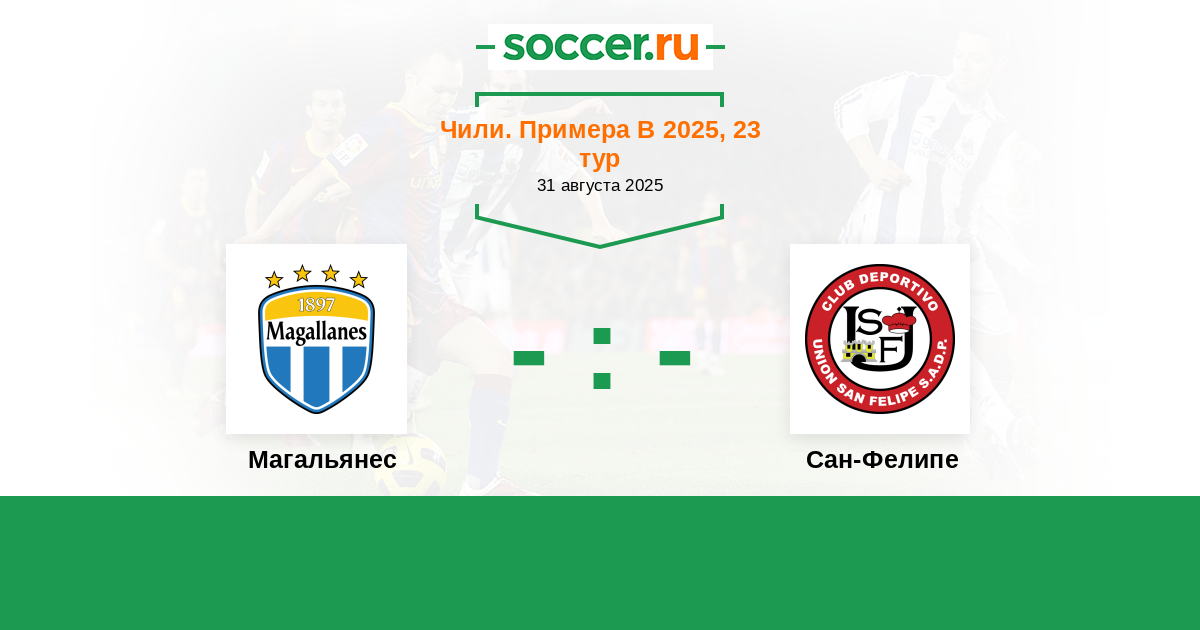 Чили. Примера В 16.08.2021 Магальянес Логотип футбольный клуб Магальянес (Сантьяго) 2:1 Логотип футбольный клуб Сан-Фелипе (Сан Фелипе) Сан-Фелипе