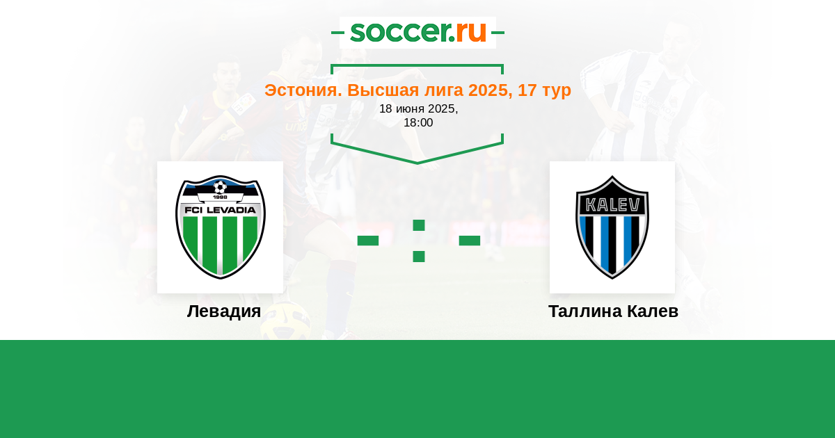 Эстония. Высшая лига 05.06.2018 Таллина Калев Логотип футбольный клуб Таллина Калев 0:4 Логотип футбольный клуб Левадия (Таллин) Левадия