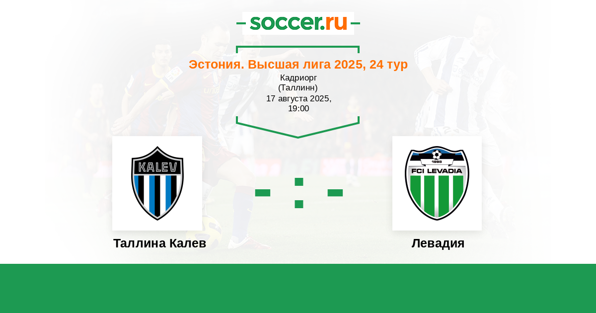 Эстония. Высшая лига 26.08.2023 Левадия Логотип футбольный клуб Левадия (Таллин) 1:1 Логотип футбольный клуб Таллина Калев Таллина Калев