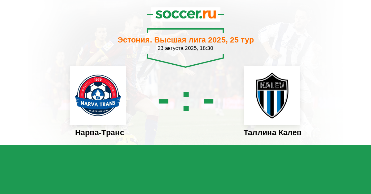 Эстония. Высшая лига 01.09.2023 Нарва-Транс Логотип футбольный клуб Нарва-Транс 2:1 Логотип футбольный клуб Таллина Калев Таллина Калев