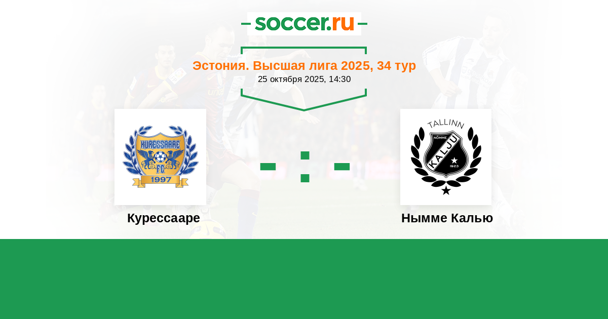 Эстония. Высшая лига 12.04.2025 Курессааре Логотип футбольный клуб Курессааре 0:2 Логотип футбольный клуб Нымме Калью (Таллин) Нымме Калью