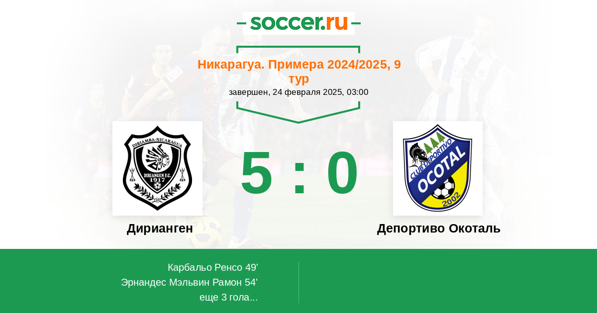 Никарагуа. Примера 01.05.2025 Депортиво Окоталь Логотип футбольный клуб Депортиво Окоталь 0:2 Логотип футбольный клуб Дирианген (Дириамба) Дирианген