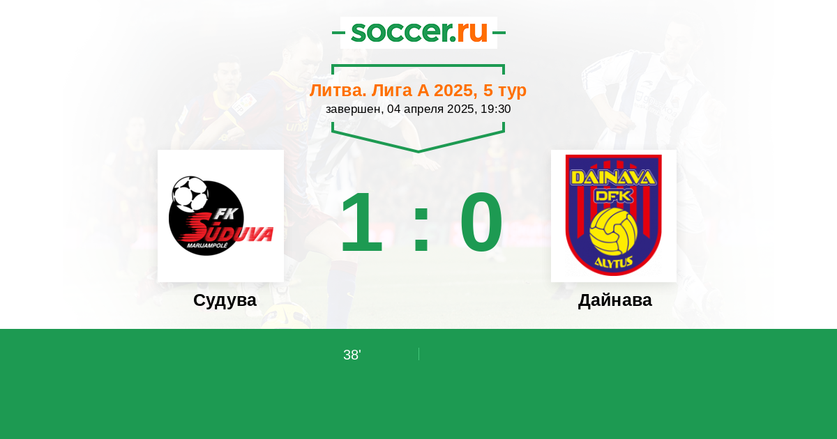 Литва. Лига А 31.03.2024 Судува Логотип футбольный клуб Судува (Мариямполе) 0:1 Логотип футбольный клуб Дайнава (Алитус) Дайнава