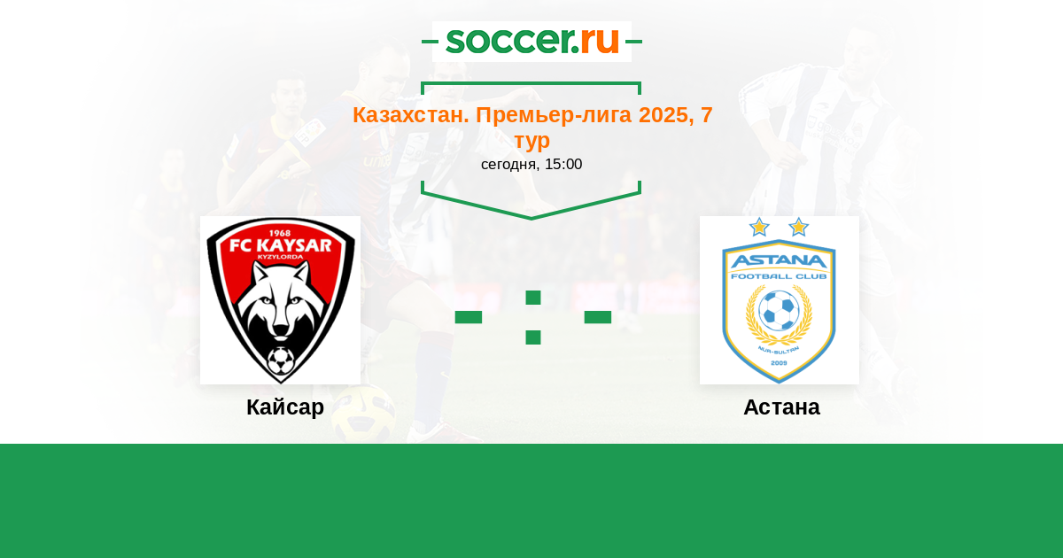 Казахстан. Премьер-лига 07.04.2019 Кайсар Логотип футбольный клуб Кайсар (Кызылорда) 0:0 Логотип футбольный клуб Астана Астана