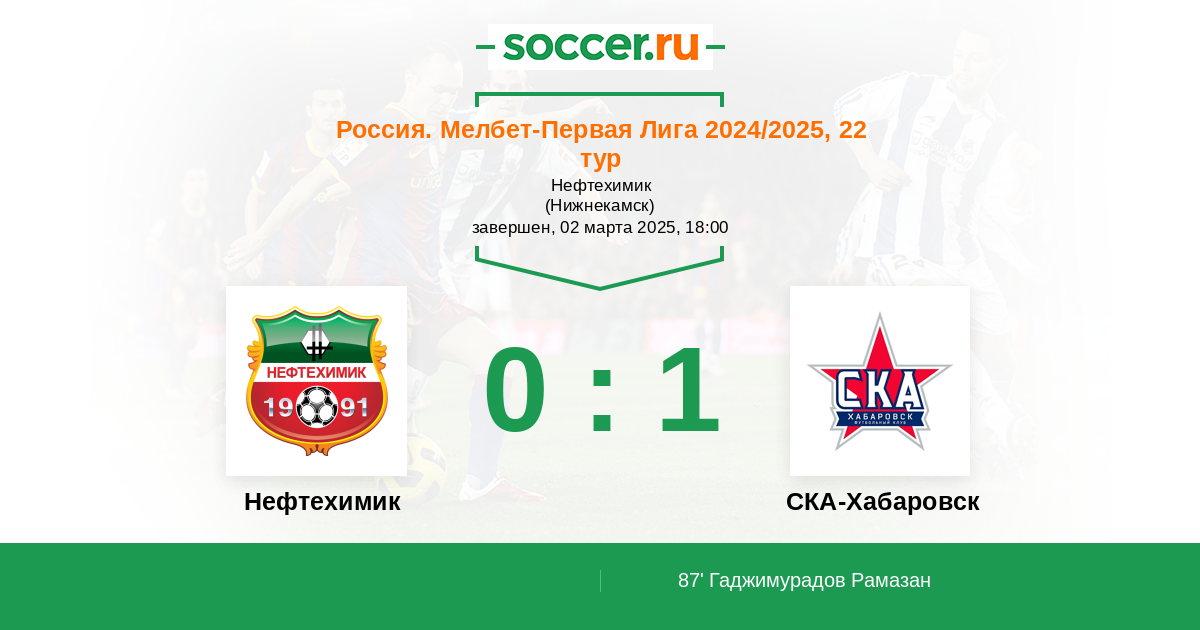 Россия. Первая лига 05.11.2016 СКА-Хабаровск Логотип футбольный клуб СКА-Хабаровск 1:0 Логотип футбольный клуб Нефтехимик (Нижнекамск) Нефтехимик