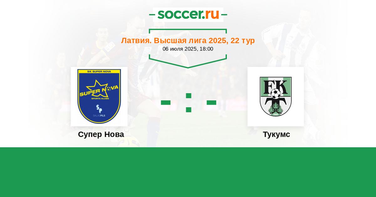 Латвия. Высшая лига 30.06.2023 Супер Нова Логотип футбольный клуб Супер Нова (Рига) 2:5 Логотип футбольный клуб Тукумс Тукумс