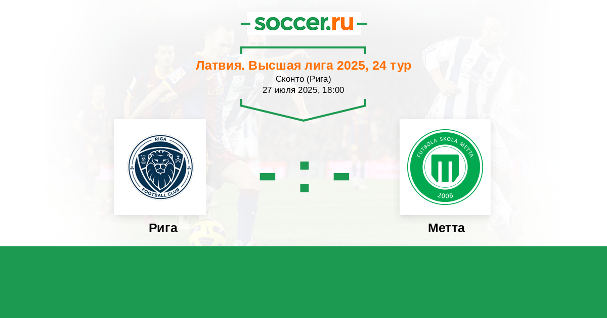 Латвия. Высшая лига 25.07.2021 Метта Логотип футбольный клуб Метта (Рига) 0:1 Логотип футбольный клуб Рига Рига
