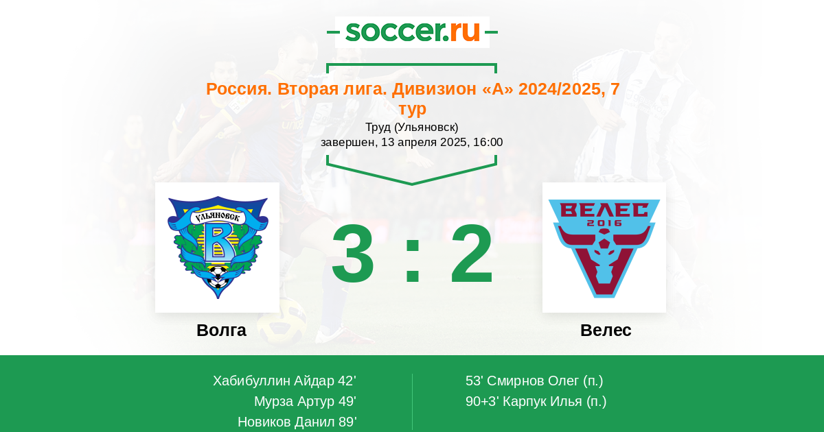 Матчи Россия. Вторая лига. Дивизион «А» 2024/2025