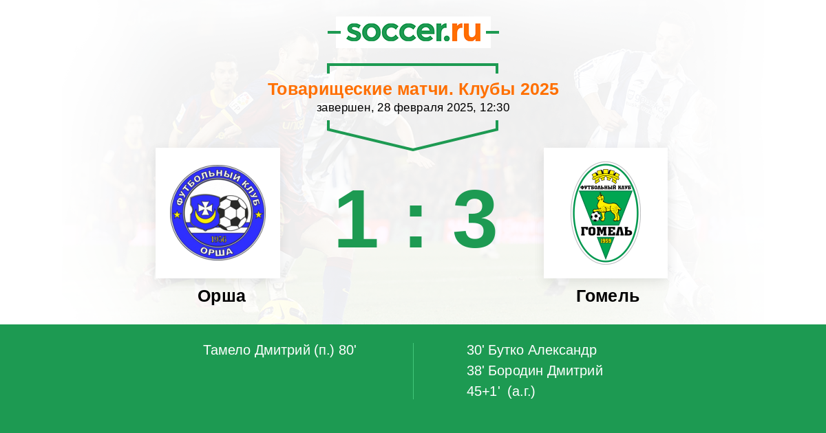 Беларусь. Первая лига 03.10.2020 Гомель Логотип футбольный клуб Гомель 4:2 Логотип футбольный клуб Орша Орша