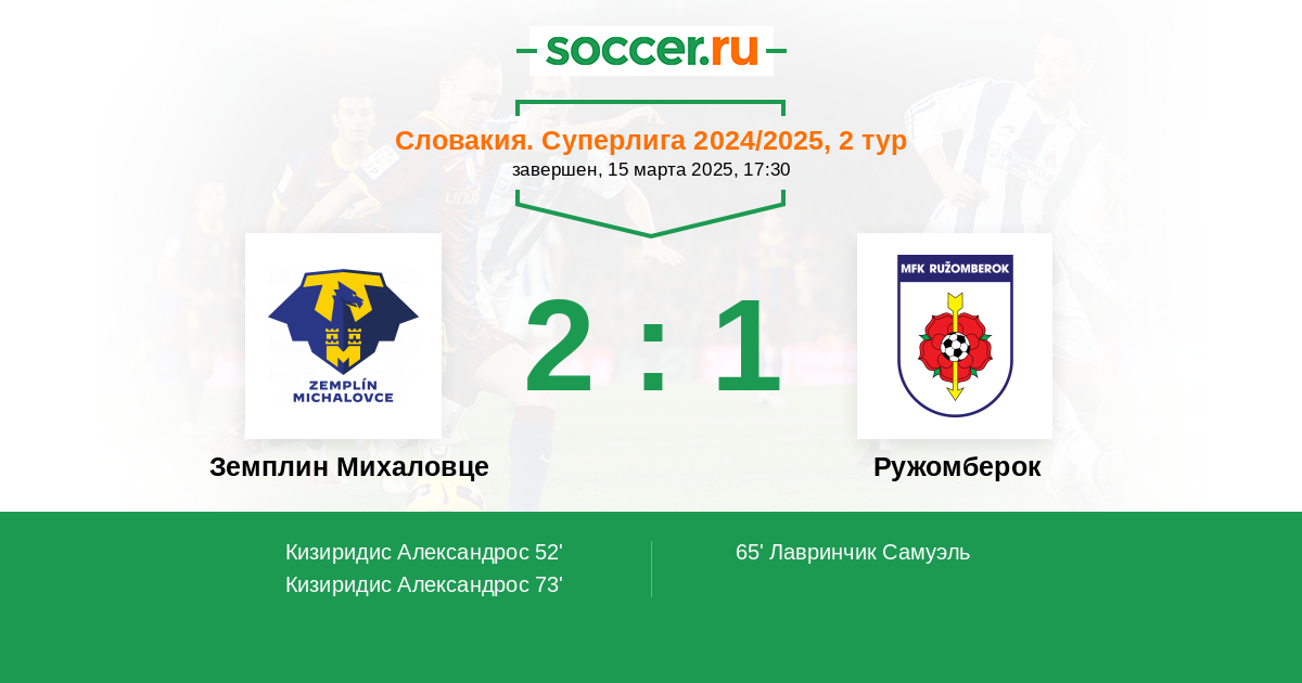 Словакия. Суперлига 16.08.2025 Ружомберок Логотип футбольный клуб Ружомберок 0:1 Логотип футбольный клуб Земплин Михаловце Земплин Михаловце
