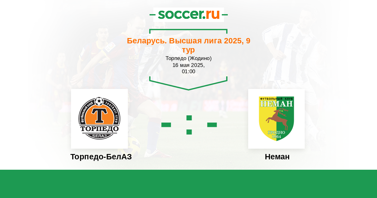 Беларусь. Высшая лига 21.05.2020 Неман Логотип футбольный клуб Неман (Гродно) 3:1 Логотип футбольный клуб Торпедо-БелАЗ (Жодино) Торпедо-БелАЗ