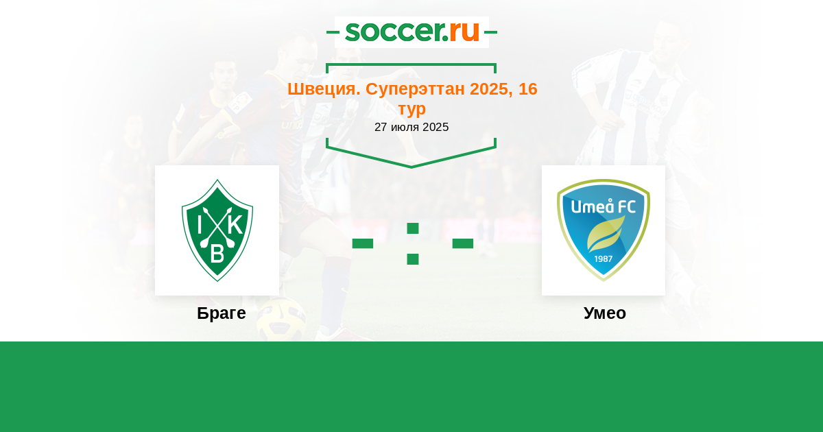 Швеция. 1-й дивизион: Север 02.07.2016 Умео Логотип футбольный клуб Умео 3:2 Логотип футбольный клуб Браге (Бурлэнге) Браге
