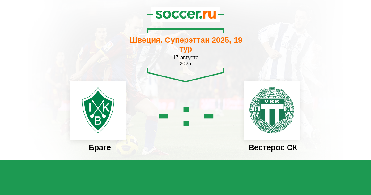 Швеция. 1-й дивизион: Север 28.08.2017 Браге Логотип футбольный клуб Браге (Бурлэнге) 1:0 Логотип футбольный клуб Вестерос СК Вестерос СК