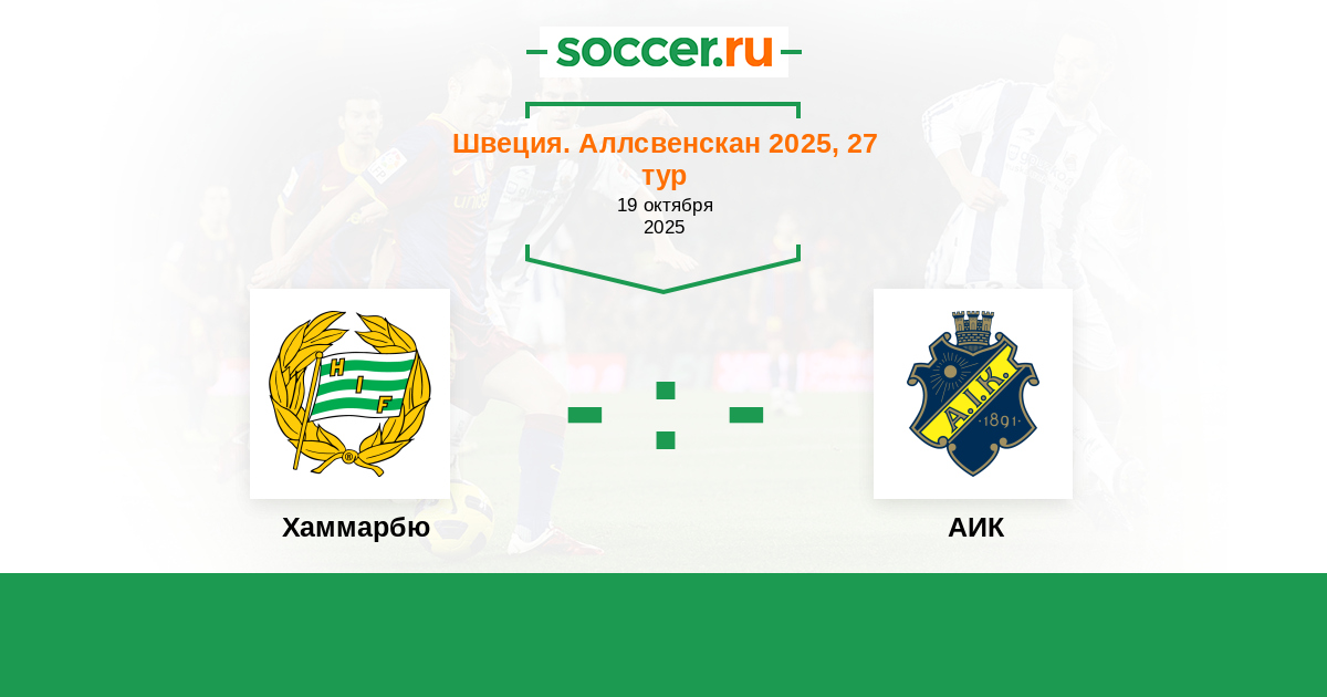 Швеция. Аллсвенскан 18.05.2025 АИК Логотип футбольный клуб АИК (Стокгольм) 0:0 Логотип футбольный клуб Хаммарбю (Стокгольм) Хаммарбю